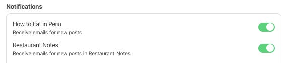 I know not all of my readers are in Peru and may not want to receive weekly e-mails about restaurants thousands of miles away, so I turned off subscriptions to Restaurant Notes by default.