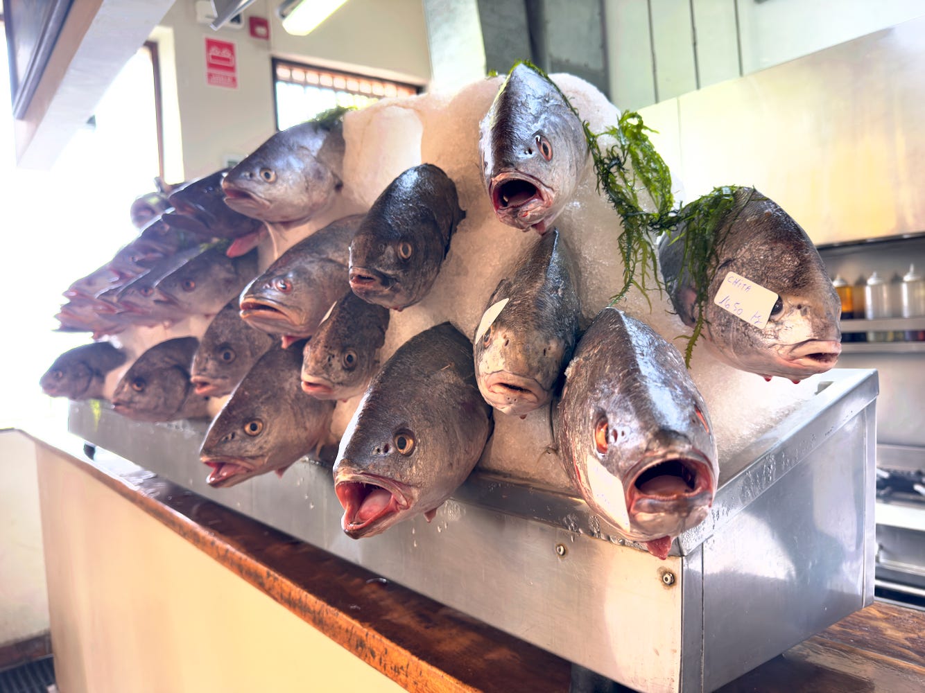For your first visit, I would ignore the a la carte menu and just order a whole fish with 2-3 preparations. The fish available varies by the day, and there’s a limited selection each day. Once a type of fish is gone, it’s gone.
