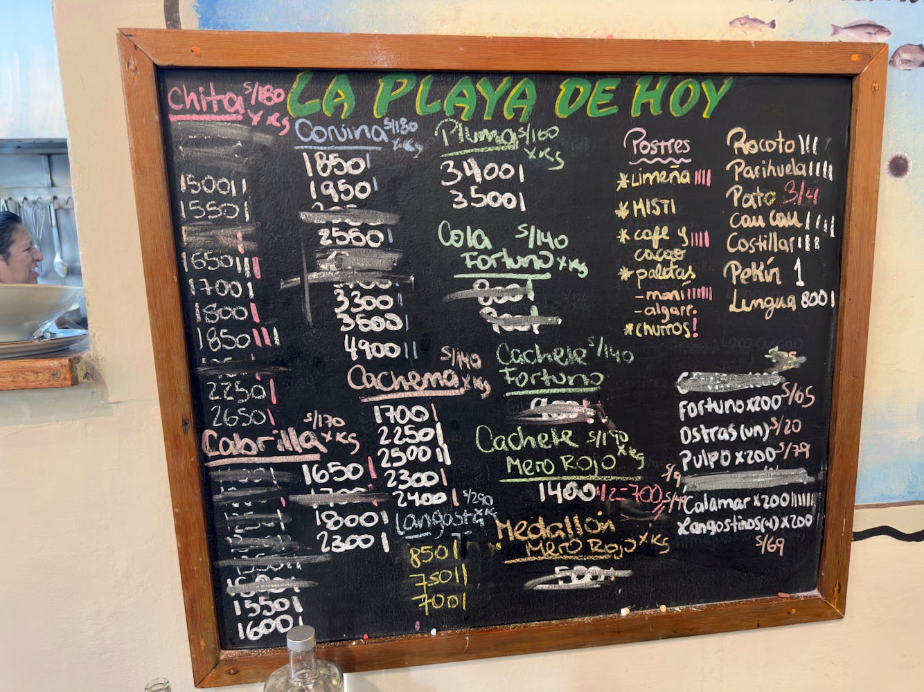 The fish is priced by weight like it would be at a market. The most expensive fish, Lenguado, was priced reasonably, only a couple more soles per kilogram than some other fish.